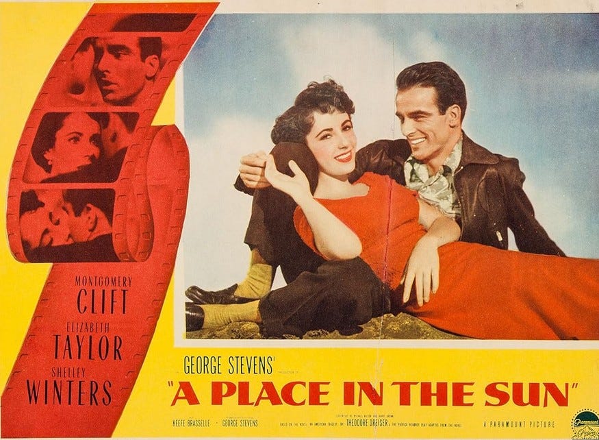Now he had Dreiser’s book and a $2.5 million budget. What kind of film would emerge? Dreiser’s great book, a criticism of capitalist society, was now in the hands of a director whose films catered to the masses. But Stevens carried inside of him a great sadness from being in the war. Perhaps that fact might alter his mind’s eye. Stevens would have to find the right poetry to bring the two together.